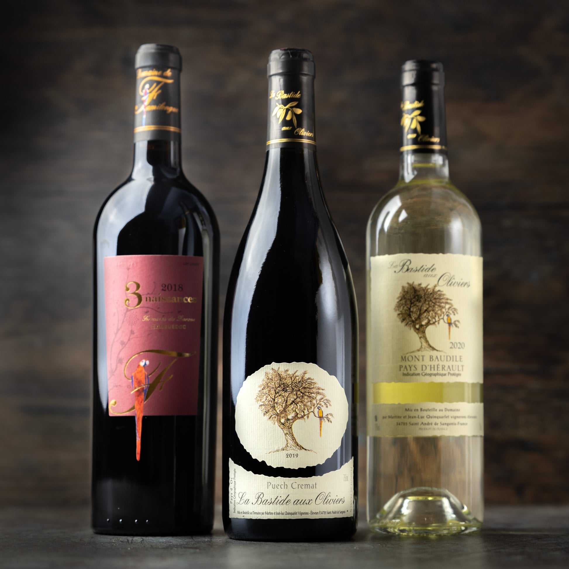 Les 3 Naissances - Blend of Syrah, Mourvèdre, Grenache, cinsault and Carignan. Full bodied, hints of black currant, notes of mocha and liquorice. Soft velvety long finish